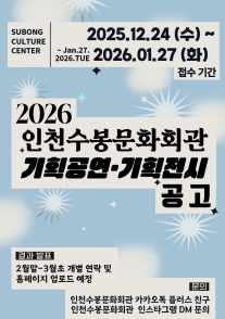 2026년도 인천수봉문화회관 기획공연 & 기획전시 공모
